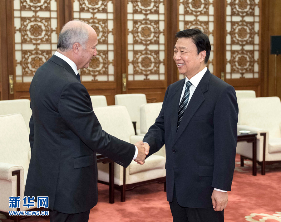7月5日,國家副主席李源潮在北京會見法國憲法委員會主席法比尤斯。 新華社記者 李濤 攝