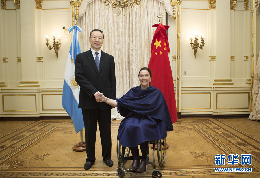 7月7日,中共中央書記處書記、全國政協(xié)副主席杜青林(左)在阿根廷首都布宜諾斯艾利斯會(huì)見阿根廷代總統(tǒng)兼參議長米切蒂。新華社發(fā)(馬丁·薩巴拉攝)