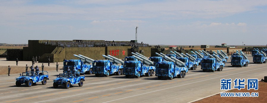7月30日,慶祝中國(guó)人民解放軍建軍90周年閱兵在位于內(nèi)蒙古的朱日和訓(xùn)練基地舉行。中共中央總書(shū)記、國(guó)家主席、中央軍委主席習(xí)近平檢閱部隊(duì)并發(fā)表重要講話(huà)。這是海軍導(dǎo)彈第1方隊(duì)。新華社記者 查春明 攝