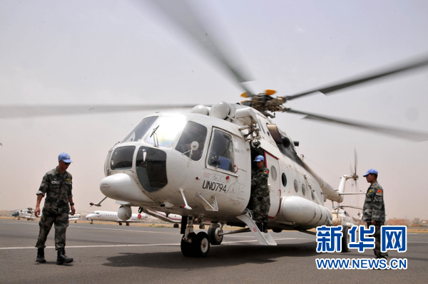 ?。吩拢常比?,中國首批維和直升機分隊在蘇丹喀土穆國際機場成功首飛。