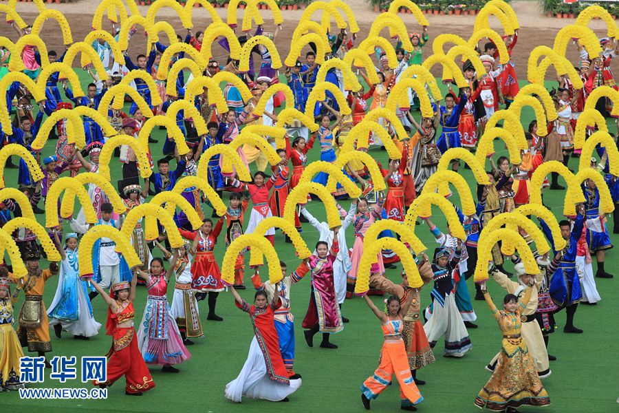 8月8日,內(nèi)蒙古自治區(qū)成立70周年慶祝大會(huì)在呼和塔拉內(nèi)蒙古少數(shù)民族群眾文化體育運(yùn)動(dòng)中心舉行。圖為群眾行進(jìn)表演。新華網(wǎng)記者 陳杰 攝?