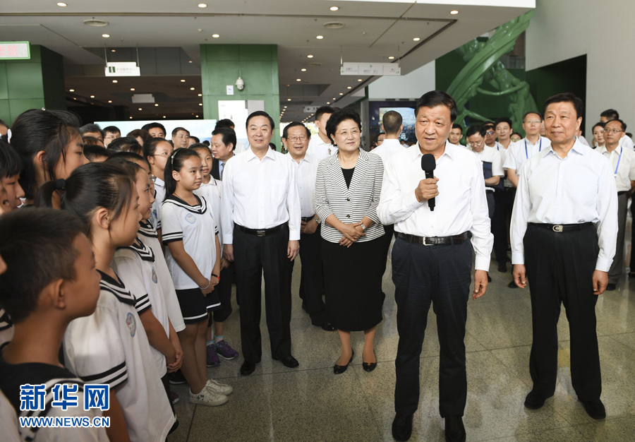 9月17日,中共中央政治局常委、中央書記處書記劉云山和劉延?xùn)|、劉奇葆、李源潮、萬鋼等領(lǐng)導(dǎo)同志來到北京中國科技館,參加全國科普日北京主場活動(dòng)。新華社記者 高潔 攝