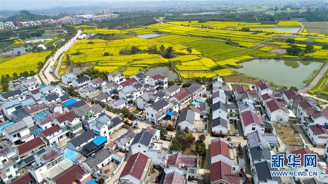 這是在江蘇省南京市高淳區(qū)椏溪國際慢城拍攝的油菜花田和民居(3月28日攝)。新華社記者 李響 攝