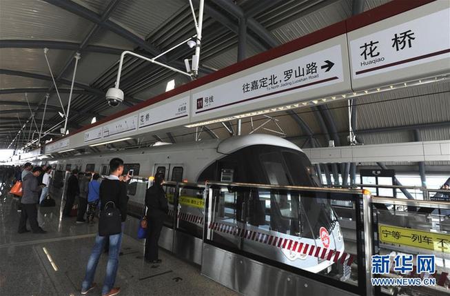 2013年10月16日,上海地鐵11號線北段延伸工程花橋段(上海安亭站至江蘇昆山花橋站)開通試運營。這是乘客在江蘇昆山花橋站站臺候車。新華社記者 劉巍巍 攝