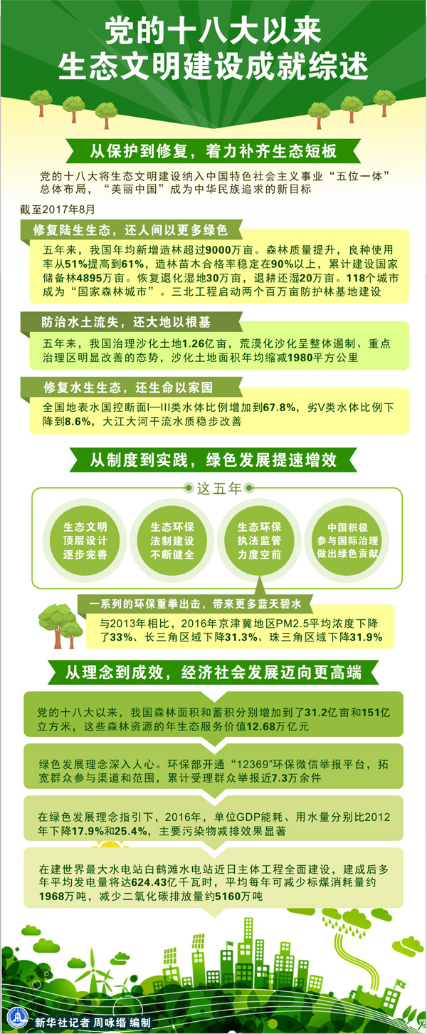 環(huán)境就是民生,青山就是美麗,藍(lán)天也是幸福。五年來(lái),我國(guó)生態(tài)文明建設(shè)力度更大、舉措更實(shí)、推進(jìn)更快、成效更好
