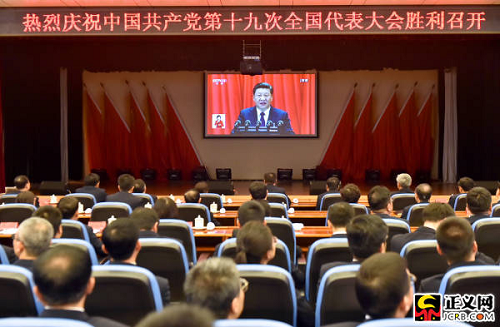 中國共產(chǎn)黨第十九次全國代表大會18日上午在人民大會堂開幕。習(xí)近平總書記代表第十八屆中央委員會向大會作了題為《決勝全面建成小康社會 奪取新時代中國特色社會主義偉大勝利》的報告。國家檢察官學(xué)院黨員干部集體收看收聽了開幕式。徐鵬宇攝