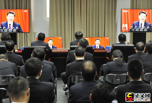 正義網(wǎng)北京10月18日電(記者王治國 徐日丹)今天上午,舉世矚目的中國共產(chǎn)黨第十九次全國代表大會在人民大會堂開幕。習(xí)近平總書記代表第十八屆中央委員會向大會作了題為《決勝全面建成小康社會 奪取新時代中國特色社會主義偉大勝利》的報告。最高人民檢察院組織機關(guān)全體黨員干部收聽收看了大會實況轉(zhuǎn)播,各內(nèi)設(shè)機構(gòu)和直屬事業(yè)單位在第一時間召開座談會,交流學(xué)習(xí)十九大報告心得體會。大家表示,要認真學(xué)習(xí)貫徹黨的十九大精神,不忘初心,牢記使命,高舉中國特色社會主義偉大旗幟,忠誠履行法律監(jiān)督職責(zé),努力開創(chuàng)檢察事業(yè)新局面,為決勝全面建成小康社會,奪取新時代中國特色社會主義偉大勝利,實現(xiàn)中華民族偉大復(fù)興的中國夢貢獻檢察力量。