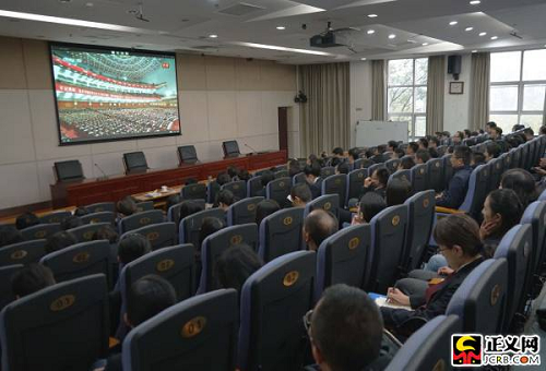 最高檢黨組成員、副檢察長李如林,黨組成員許衛(wèi)國,檢委會專職委員陳國慶與機關(guān)黨員干部一同收看了大會實況轉(zhuǎn)播。