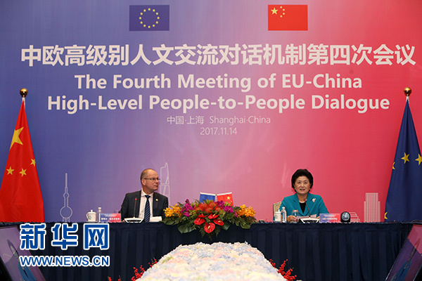 11月14日,國務(wù)院副總理劉延?xùn)|與歐盟委員會(huì)教育、文化、青年和體育委員瑙夫勞契奇作為機(jī)制雙方主席在上海共同主持中歐高級別人文交流對話機(jī)制第四次會(huì)議。新華社記者 劉穎 攝