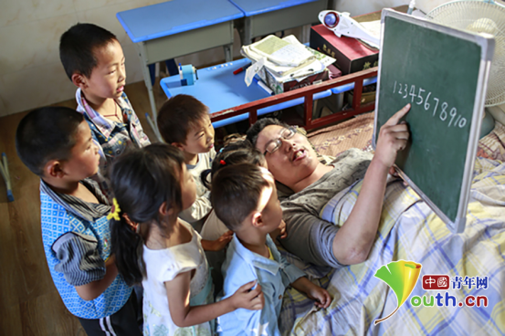 由于葉海濤的雙下肢關(guān)節(jié)僵直,沒有辦法筆直地坐著,他便躺在病床上,側(cè)著身子用小黑板給孩子們講解題目。可是這樣一來,躺的時間一旦久了,葉海濤的身體便會全都麻木,疼痛難忍。但他卻始終堅持著……最難熬的是夏季,他睡在板床上長時間保持同一個姿勢,全身都被汗水浸透了,額頭上黃豆般大小的汗珠不斷地冒出,滾落到板床上,床面已經(jīng)被浸濕。常人都難以忍受,更何況是患病在床的葉海濤呢?在這種異常難受的狀態(tài)下,葉海濤憑借自己驚人的毅力,克服困難,十八年如一日,堅持為孩子們輔導(dǎo)功課。這份教學(xué)工作,是繁雜的,須深入學(xué)習(xí)、不斷鉆研,研究教學(xué)思路。為了更好地勝任這份輔導(dǎo)任務(wù),他經(jīng)常在空余時間閱讀有關(guān)教育方面的書籍。