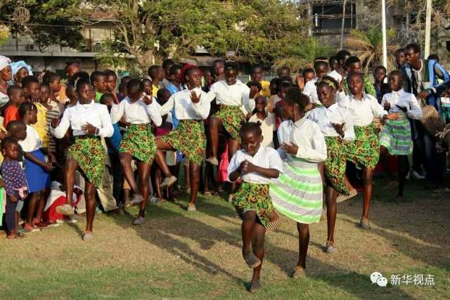2016年4月30日,岡比亞學生團體在首都班珠爾建城200周年慶?;顒又斜硌菸璧?。新華社記者 王猛攝