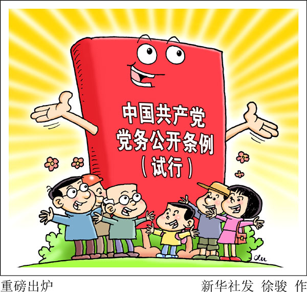 推進(jìn)黨務(wù)公開(kāi) 讓權(quán)力在陽(yáng)光下運(yùn)行 ——中央辦公廳有關(guān)負(fù)責(zé)人就 《中國(guó)共產(chǎn)黨黨務(wù)公開(kāi)條例(試行)》答記者問(wèn)