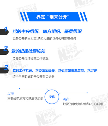 《條例》明確規(guī)定了公開范圍,主要包括向社會(huì)公開,在全黨公開,在本地區(qū)、本部門、本單位公開,對(duì)特定黨的組織、黨員和群眾公開。并規(guī)定了黨的組織應(yīng)當(dāng)根據(jù)《條例》規(guī)定的黨務(wù)公開內(nèi)容和范圍,編制黨務(wù)公開目錄,并根據(jù)職責(zé)任務(wù)要求動(dòng)態(tài)調(diào)整。