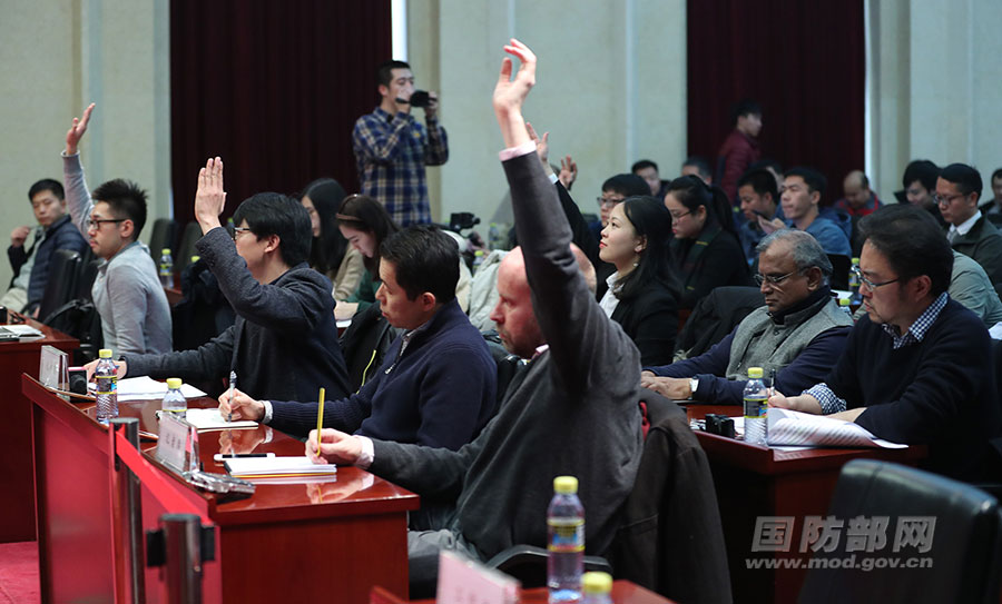 12月28日下午,國防部舉行例行記者會,國防部新聞局副局長、國防部新聞發(fā)言人任國強(qiáng)大校回答記者提問,圖為例會現(xiàn)場。李曉偉 攝