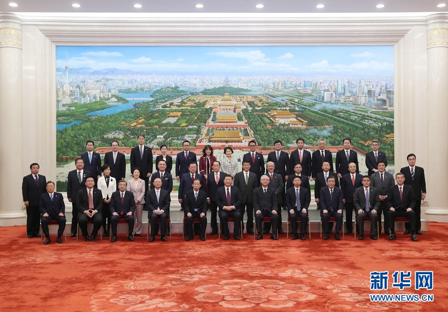 會見后,習(xí)近平與參加中日執(zhí)政黨交流機(jī)制第七次會議部分日方代表合影留念。