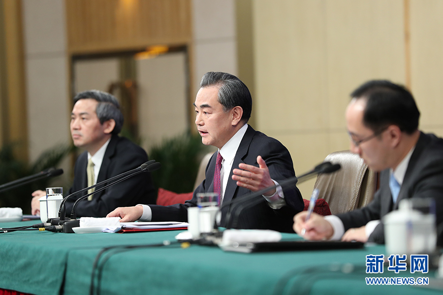 十二屆全國人大五次會(huì)議新聞中心于3月8日(星期三)10時(shí)在梅地亞中心多功能廳舉行記者會(huì),邀請外交部部長王毅就“中國的外交政策和對外關(guān)系”的相關(guān)問題回答中外記者的提問。圖為外交部部長王毅回答現(xiàn)場記者提問。新華網(wǎng)/中國政府網(wǎng) 孫韜 攝