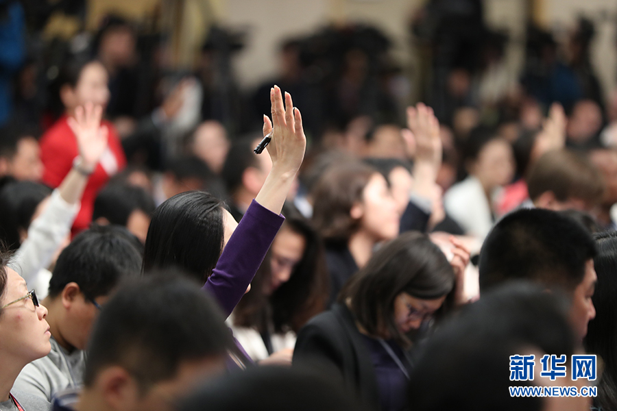 十二屆全國人大五次會議新聞中心于3月8日(星期三)10時在梅地亞中心多功能廳舉行記者會,邀請外交部部長王毅就“中國的外交政策和對外關(guān)系”的相關(guān)問題回答中外記者的提問。圖為現(xiàn)場記者踴躍提問。新華網(wǎng)/中國政府網(wǎng) 翟子赫 攝?