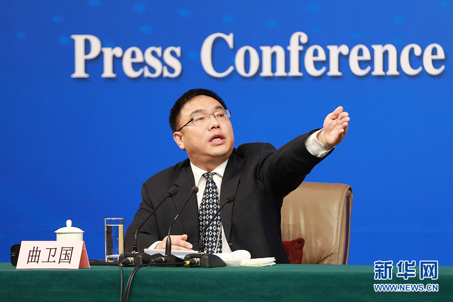 3月12日,十二屆全國人大五次會議新聞中心舉行記者會,邀請教育部部長陳寶生就“教育改革發(fā)展”的相關問題回答中外記者的提問。圖為記者會主持人曲衛(wèi)國。新華網(wǎng)/中國政府網(wǎng) 傅義洲 攝