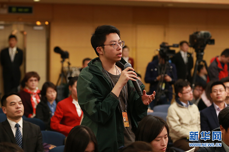 3月12日,十二屆全國(guó)人大五次會(huì)議新聞中心舉行記者會(huì),邀請(qǐng)教育部部長(zhǎng)陳寶生就“教育改革發(fā)展”的相關(guān)問題回答中外記者的提問。圖為北京青年報(bào)記者提問。新華網(wǎng)/中國(guó)政府網(wǎng) 傅義洲 攝