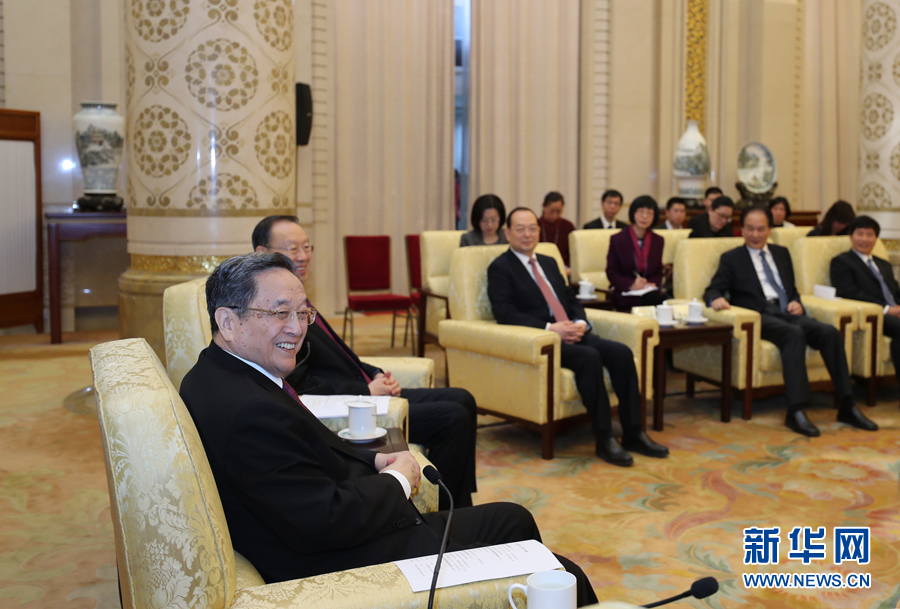 ??? 3月13日,中共中央政治局常委、全國政協(xié)主席俞正聲在北京人民大會堂看望參加全國政協(xié)十二屆五次會議新聞報道工作的中央主要新聞媒體負責同志和記者代表,向參加大會報道的新聞工作者表示誠摯慰問和衷心感謝。新華社記者 鞠鵬 攝