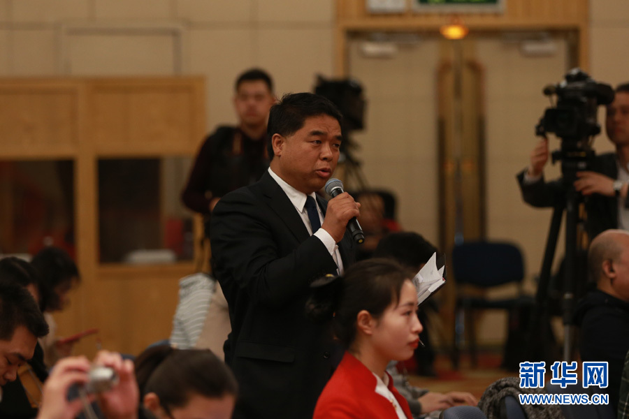 3月14日,十二屆全國(guó)人大五次會(huì)議新聞中心舉行記者會(huì),邀請(qǐng)國(guó)家質(zhì)檢總局局長(zhǎng)支樹平、副局長(zhǎng)兼國(guó)家認(rèn)證認(rèn)可監(jiān)督管理委員會(huì)主任孫大偉、國(guó)家標(biāo)準(zhǔn)化管理委員會(huì)主任田世宏就“質(zhì)量提升”的相關(guān)問(wèn)題回答中外記者的提問(wèn)。圖為消費(fèi)日?qǐng)?bào)記者提問(wèn)。新華網(wǎng)/中國(guó)政府網(wǎng) 傅義洲 攝