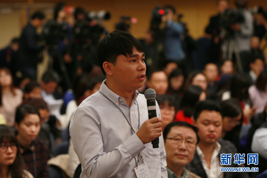 3月14日,十二屆全國人大五次會議新聞中心舉行記者會,邀請國家質(zhì)檢總局局長支樹平、副局長兼國家認證認可監(jiān)督管理委員會主任孫大偉、國家標準化管理委員會主任田世宏就“質(zhì)量提升”的相關問題回答中外記者的提問。圖為光明日報記者提問。新華網(wǎng)/中國政府網(wǎng) 傅義洲 攝?