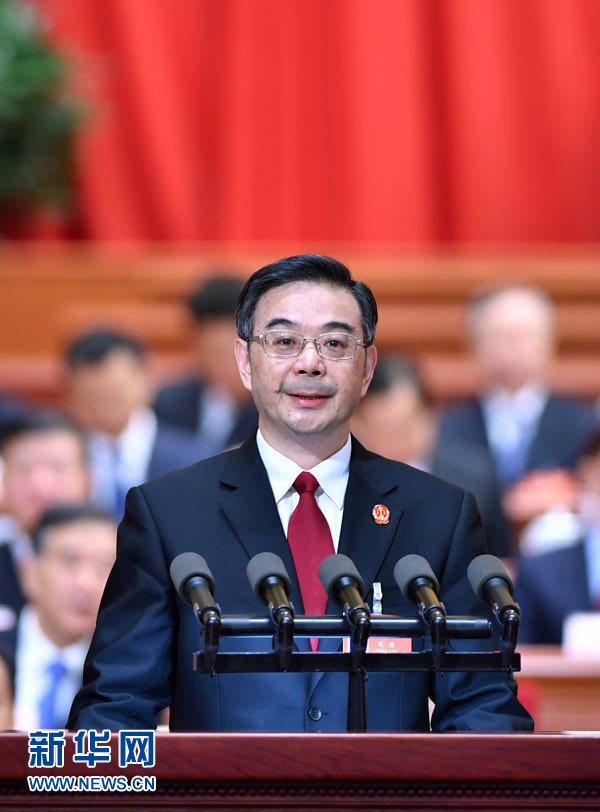 3月12日,十二屆全國人大五次會議在北京人民大會堂舉行第三次全體會議。最高人民法院院長周強作最高人民法院工作報告。 新華社記者李濤攝
