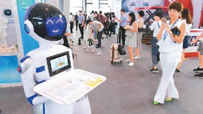 中國-東盟博覽會(huì)上的機(jī)器人服務(wù)員。新華社發(fā)