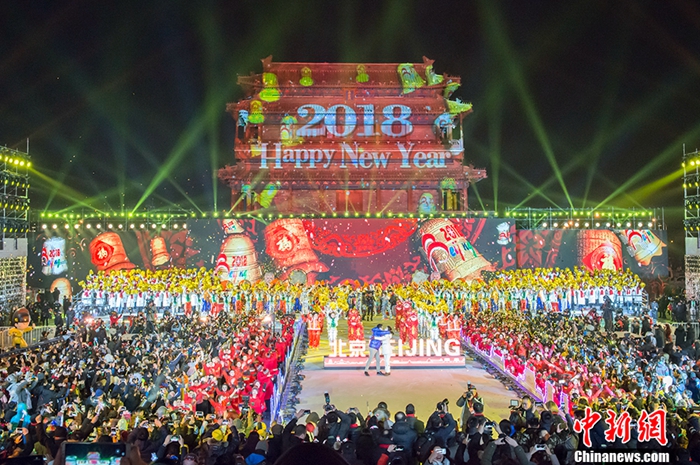 北京永定門上演2018新年倒計時 古老與現(xiàn)代交融