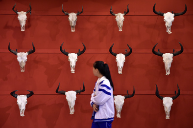 ▲2017年12月28日,觀眾在廣州藝術(shù)博物院觀看“牦牛走進(jìn)羊城——西藏牦牛文化展”展品。新華社記者梁旭攝