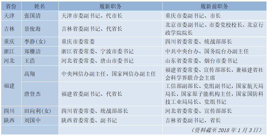 2017年12月,山東省委常委、煙臺市委書記王浩調(diào)任河北省委常委、唐山市委書記,河北省委常委、宣傳部部長田向利接替李靜出任四川省委常委、統(tǒng)戰(zhàn)部部長,李靜轉(zhuǎn)任重慶市委委員、常委。此番履新前,王浩一直在山東任職,田向利一直在河北任職,李靜一直在四川任職。