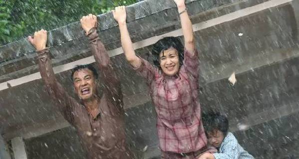 羅先生(任達(dá)華飾)羅太太(吳君如飾)用身體撐起頂棚。《歲月神偷》劇照