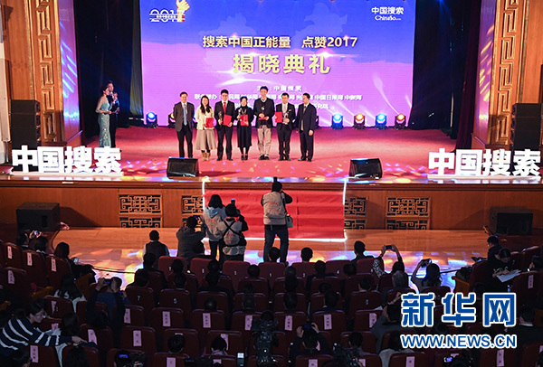 1月19日,“搜索中國(guó)正能量點(diǎn)贊2017”活動(dòng)獲獎(jiǎng)企業(yè)代表在頒獎(jiǎng)典禮上領(lǐng)獎(jiǎng)。當(dāng)日,由中國(guó)搜索創(chuàng)意策劃,聯(lián)合多家中央重點(diǎn)新聞網(wǎng)站和北京大學(xué)新媒體研究院共同舉辦的“搜索中國(guó)正能量點(diǎn)贊2017”大型網(wǎng)絡(luò)宣傳活動(dòng)揭曉典禮在北京舉行。此次活動(dòng)歷時(shí)兩月,征集評(píng)選出“精彩中國(guó)、創(chuàng)新中國(guó)、美麗中國(guó)、公益中國(guó)、品牌中國(guó)”五大系列23個(gè)熱搜、點(diǎn)贊榜單。新華社記者 李賀 攝