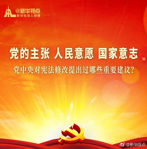 新華網(wǎng)北京1月20日電 黨的十九屆二中全會1月18日至19日在京召開,會議審議通過了《中共中央關(guān)于修改憲法部分內(nèi)容的建議》?,F(xiàn)行“八二憲法”公布實施后,根據(jù)我國改革開放和社會主義現(xiàn)代化建設(shè)的實踐與發(fā)展,分別于1988年、1993年、1999年、2004年進行了4次修改。每一次都是由黨中央向全國人大常委會提出憲法修改建議,經(jīng)過法定程序使黨的主張和人民意愿成為國家意志。(據(jù)新華視點微博)