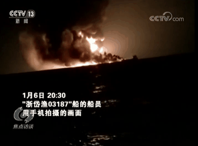 從撞船到“桑吉”輪沉沒(méi),這八天里究竟發(fā)生了些什么? 整個(gè)事件還是要從2018年1月6日的那個(gè)晚上說(shuō)起。當(dāng)晚,首先發(fā)現(xiàn)兩艘商船碰撞起火的是正行駛在返港途中的中國(guó)漁船——浙岱漁03187船的船員。