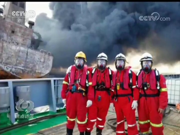 交通運(yùn)輸部東海救助局救助指揮處處長(zhǎng)蔣文輝說(shuō):”除了前面當(dāng)時(shí)現(xiàn)場(chǎng)前頭一號(hào)艙跟首間艙的位置,后面整個(gè)都是在燃燒、爆炸以及濃煙覆蓋中,包括我們后面的那個(gè)生活區(qū),整個(gè)在爆炸和燃燒、濃煙中?!?/p>
