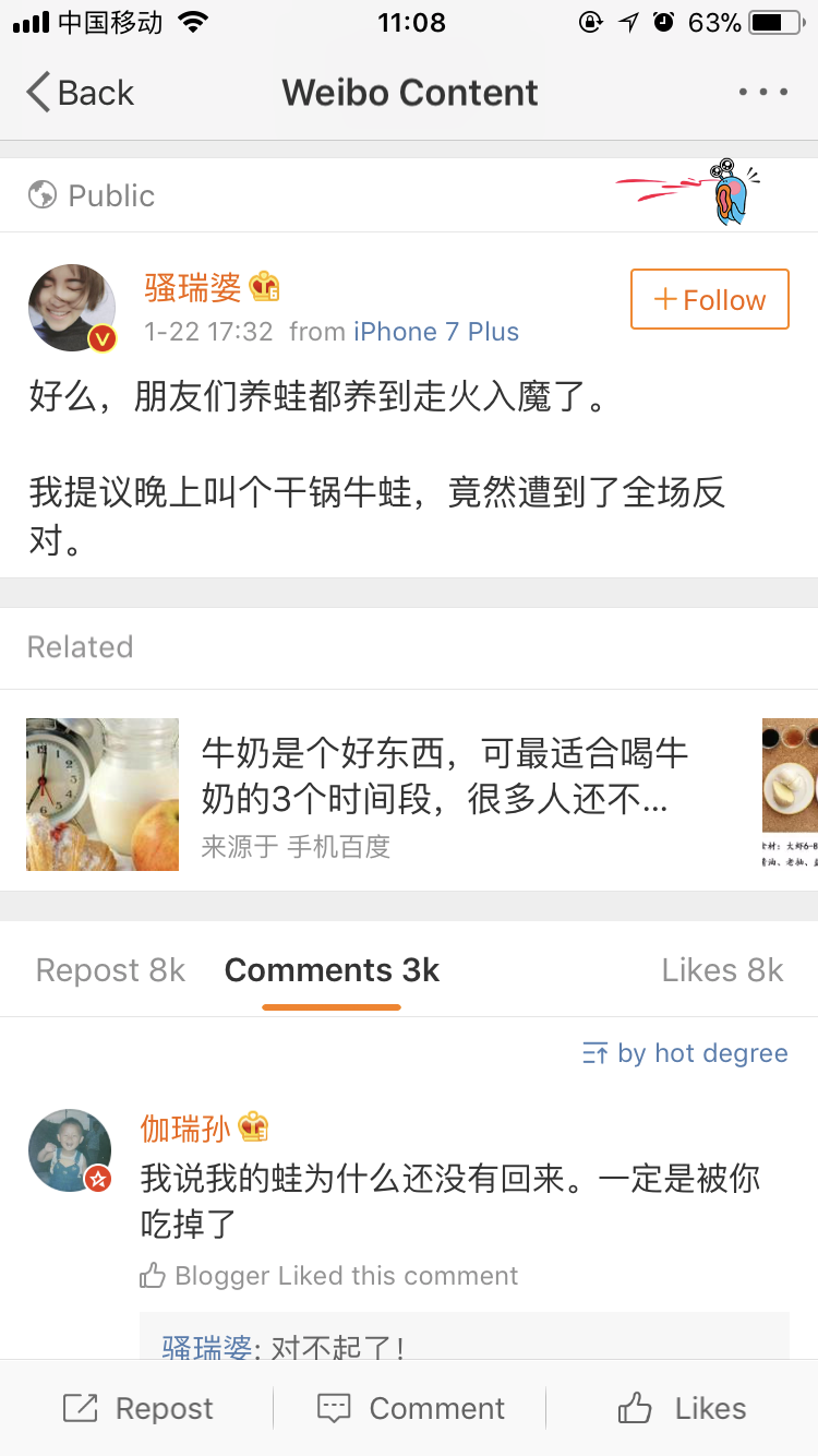 大家都親切地喊小青蛙:“呱兒子”“崽崽”,