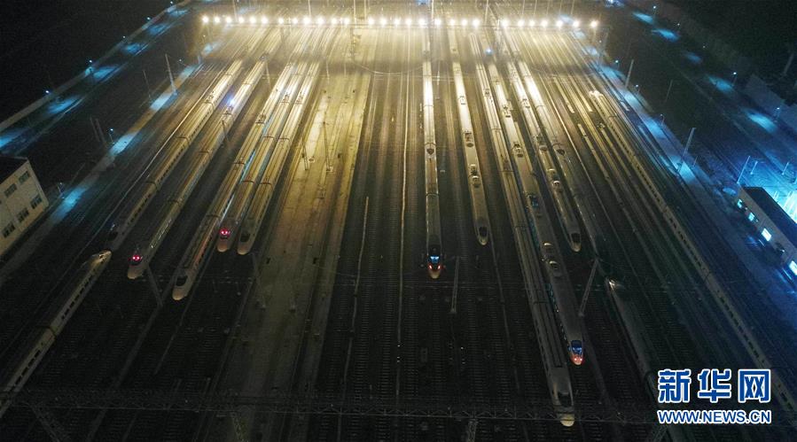 這是1月31日清晨在貴陽(yáng)北動(dòng)車運(yùn)用所拍攝的動(dòng)車組列車。春運(yùn)即將開始,貴陽(yáng)北動(dòng)車運(yùn)用所各個(gè)系統(tǒng)的工作人員對(duì)動(dòng)車組列車進(jìn)行全面細(xì)致的“體檢”,確保春運(yùn)期間動(dòng)車組列車安全運(yùn)行。新華社發(fā) 吳吉斌 攝