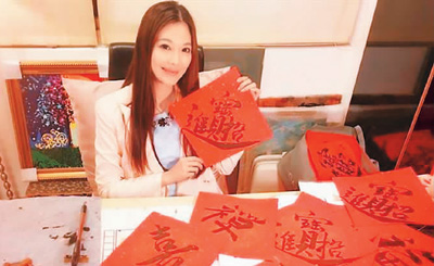 臺灣知名模特姚采穎寫春聯(lián)用于義賣