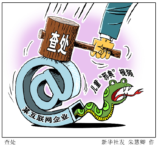 按照全國(guó)“掃黃打非”工作小組辦公室的部署要求,近期,廣東、北京兩地“掃黃打非”部門深入查辦涉兒童邪典視頻案件。優(yōu)酷、愛(ài)奇藝等一批為兒童“邪典”視頻提供傳播平臺(tái)的互聯(lián)網(wǎng)企業(yè)被依法查處。新華社發(fā) 朱慧卿 作