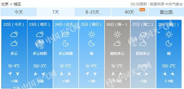今天是春節(jié)假期后的第一個(gè)工作日,晴暖的天氣和湛藍(lán)的天空或許能給公眾帶來一份好心情。北京市氣象臺(tái)預(yù)計(jì),今天白天晴轉(zhuǎn)多云,北轉(zhuǎn)南風(fēng)三級(jí)左右,最高氣溫9℃;夜間多云轉(zhuǎn)晴,南轉(zhuǎn)北風(fēng)二三級(jí),最低氣溫零下4℃。