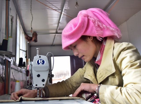 記者在村民文昌多吉的作坊里看到,地上鋪滿待剪裁的布料,幾臺裁縫機整齊擺放著。冬日的暖陽透過玻璃窗照射進來,多吉和妻子一人負責(zé)剪裁,一人負責(zé)縫紉。而平時他家有5個人做,最多的時候一天可掙1000元,相當(dāng)于過去種地一年的收入。