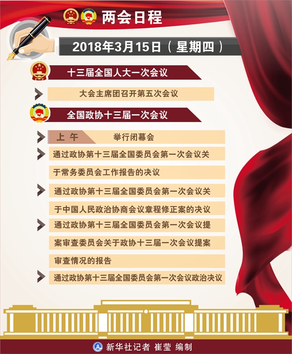 十三屆全國人大一次會議15日安排代表休息。大會主席團(tuán)召開第五次會議。