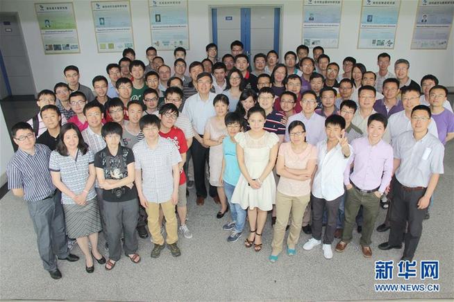盧柯與其團隊的合影(照片中間身著淺色襯衫者為盧柯,2014年6月4日攝)。