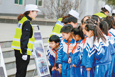 山西翼城縣交警走進轄區(qū)匯豐學(xué)校宣講交通安全知識,幫助孩子們養(yǎng)成文明出行的良好習(xí)慣。劉偉 攝(人民視覺)
