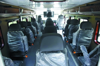 例如云南邊防某團裝備的“野?!敝匦脱策壾嚕捎蒙虅?wù)車一樣的橫排乘坐方式,在行進中觀察或是射擊都非常方便。它可以一次搭乘17名全副武裝的士兵,車身上還有機槍支架平臺、北斗定位系統(tǒng)、實時通訊系統(tǒng)、監(jiān)控和圖像傳輸系統(tǒng)??紤]到邊防官兵要長時間在野外巡邏,車上飲用水、凈水機、廚房和衛(wèi)生間等設(shè)施一應(yīng)俱全。它能讓邊防官兵在惡劣的自然條件下吃上熱飯菜,喝上干凈的水,對于戰(zhàn)士們保持體力,更好地完成任務(wù)大有幫助。