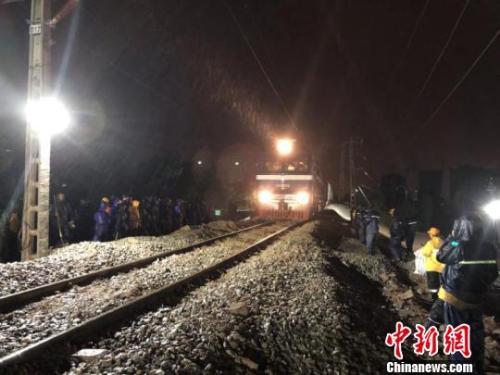 圖為14日凌晨首趟列車39911次通過(guò)塌陷區(qū)段 呂恩超 攝