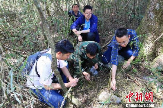 工作人員搜集大熊貓痕跡。 黃剛 攝