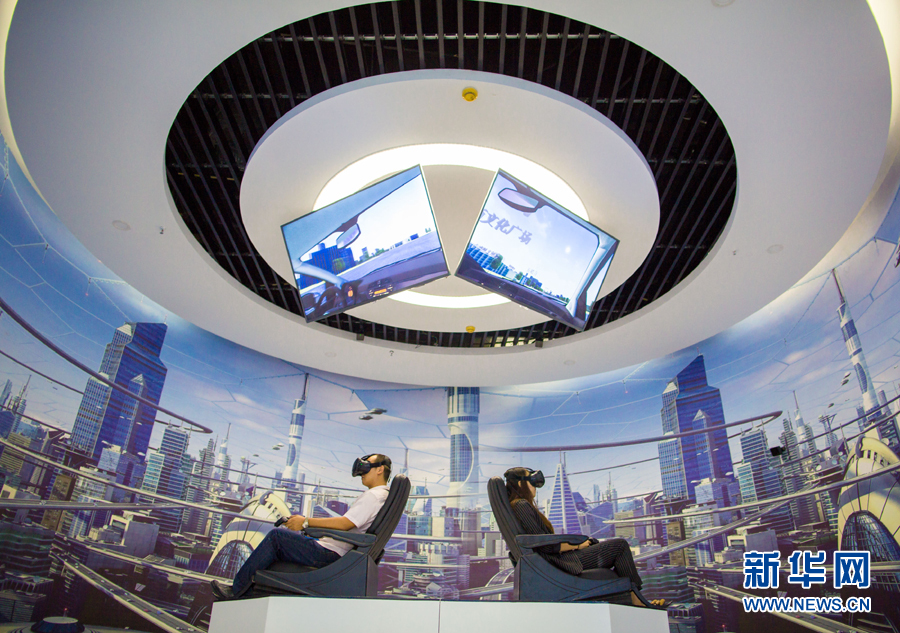 市民在內(nèi)蒙古呼和浩特玉泉區(qū)大數(shù)據(jù)應用產(chǎn)業(yè)基地體驗VR眼鏡(2017年8月1日攝)。新華社發(fā)(丁根厚 攝)