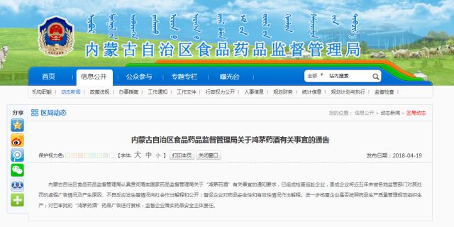 內(nèi)蒙古自治區(qū)食品藥品監(jiān)督管理局認(rèn)真貫徹落實(shí)國家藥品監(jiān)督管理局關(guān)于“鴻茅藥酒”有關(guān)事宜的通知要求,已組成檢查組赴企業(yè),責(zé)成企業(yè)將近五年來被各地監(jiān)管部門對(duì)其處罰的虛假廣告情況及產(chǎn)生原因、不良反應(yīng)發(fā)生等情況向社會(huì)作出解釋和公開;督促企業(yè)對(duì)藥品安全性和有效性情況作出解釋。進(jìn)一步核查企業(yè)是否按照藥品生產(chǎn)質(zhì)量管理規(guī)范組織生產(chǎn);對(duì)已審批的“鴻茅藥酒”藥品廣告進(jìn)行復(fù)核;監(jiān)督企業(yè)落實(shí)藥品安全主體責(zé)任。